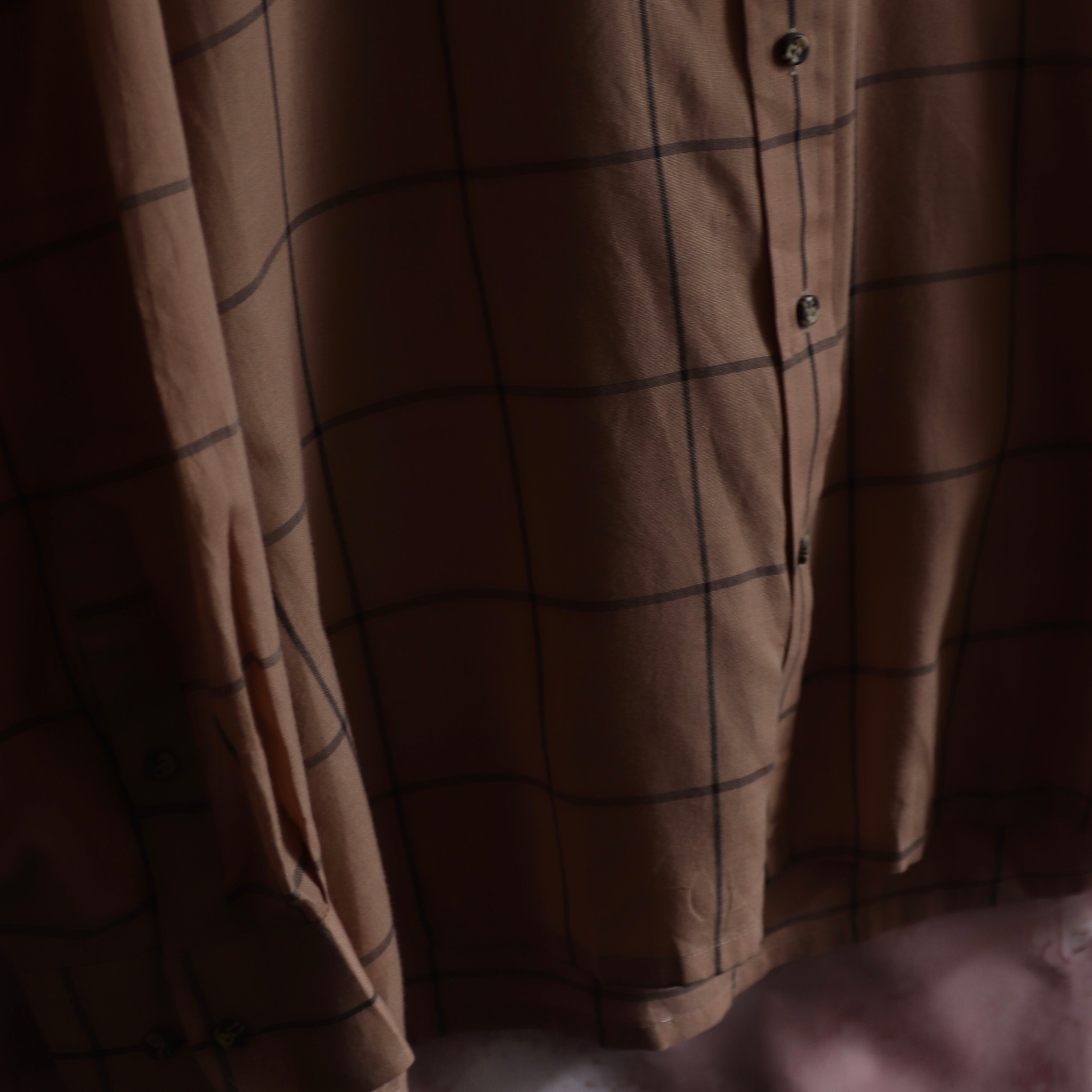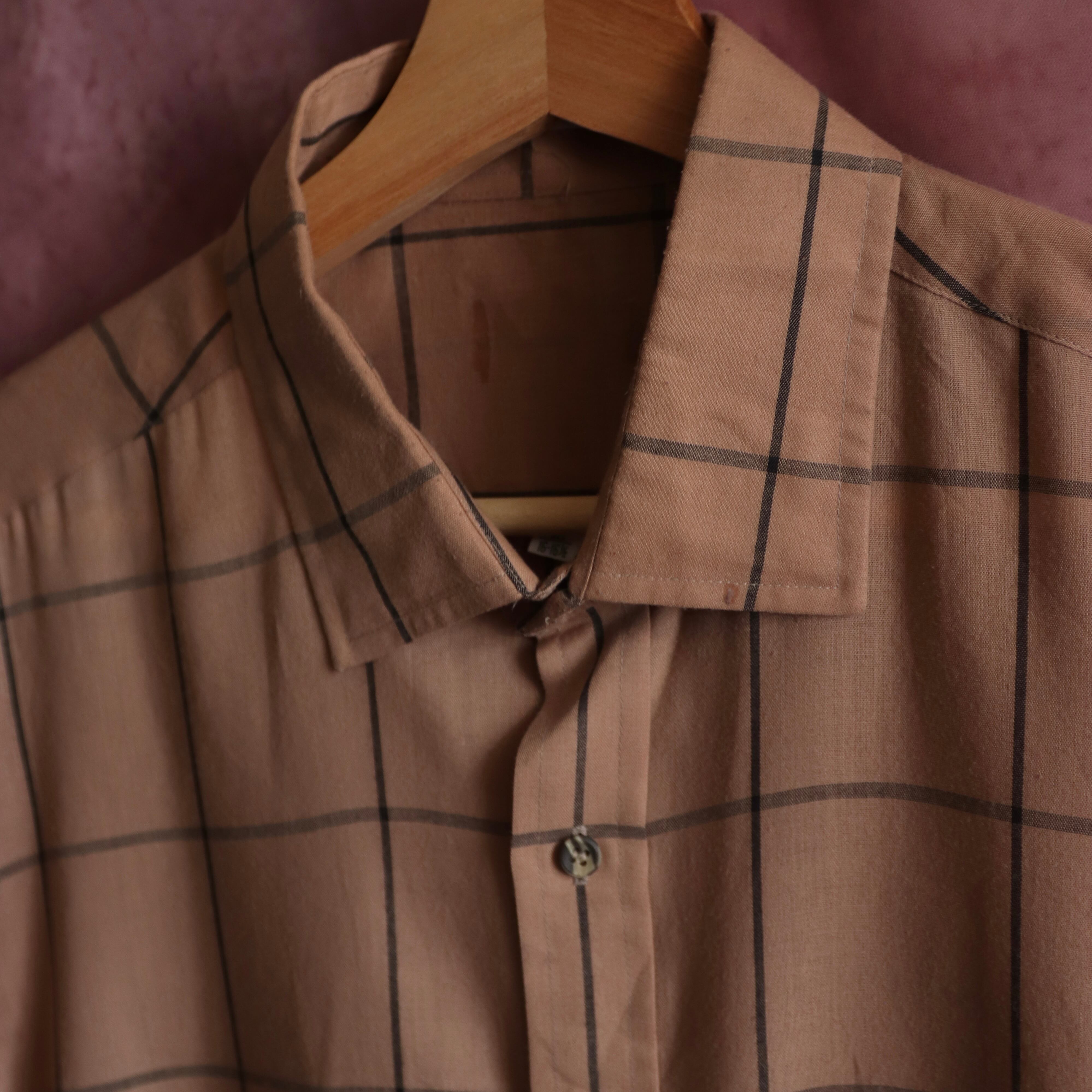 落ち着いた黄銅色のデザインシャツ。