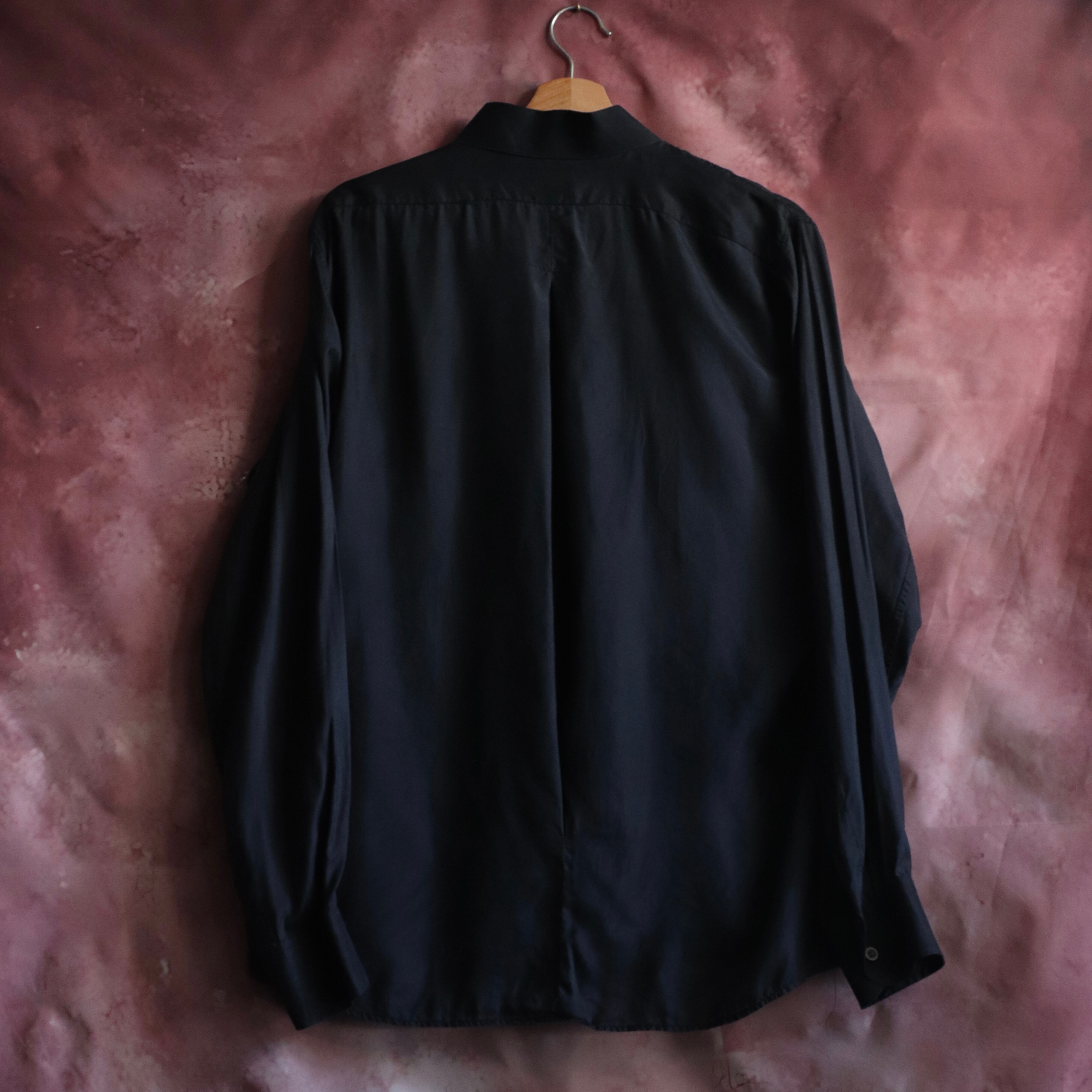 若干薄手になっており、シアーシャツに近いくらい透け感もあるので、夏場でもしっかり着用いただける黒シャツです。