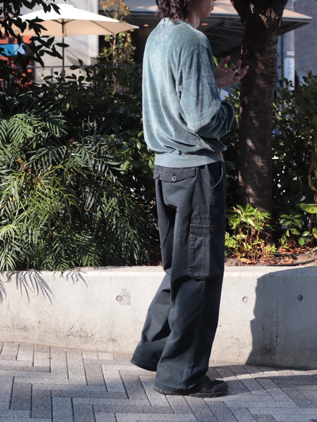 渡り、裾といい太さのしたブラックカーゴ。