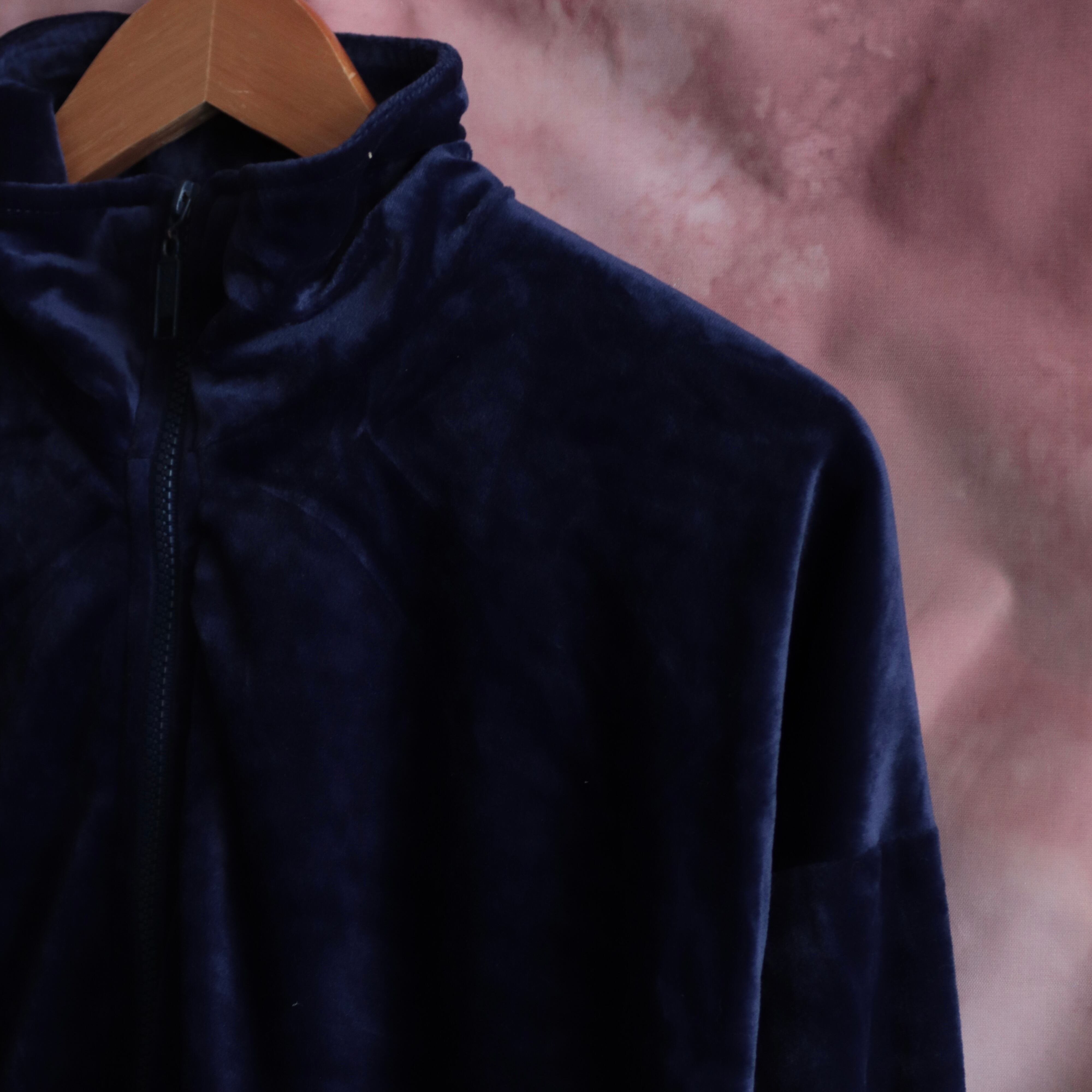 ベロアの綺麗な1面と、トラックジャケットのカジュアルなバランスが程よく、使い勝手の良いジャケット。